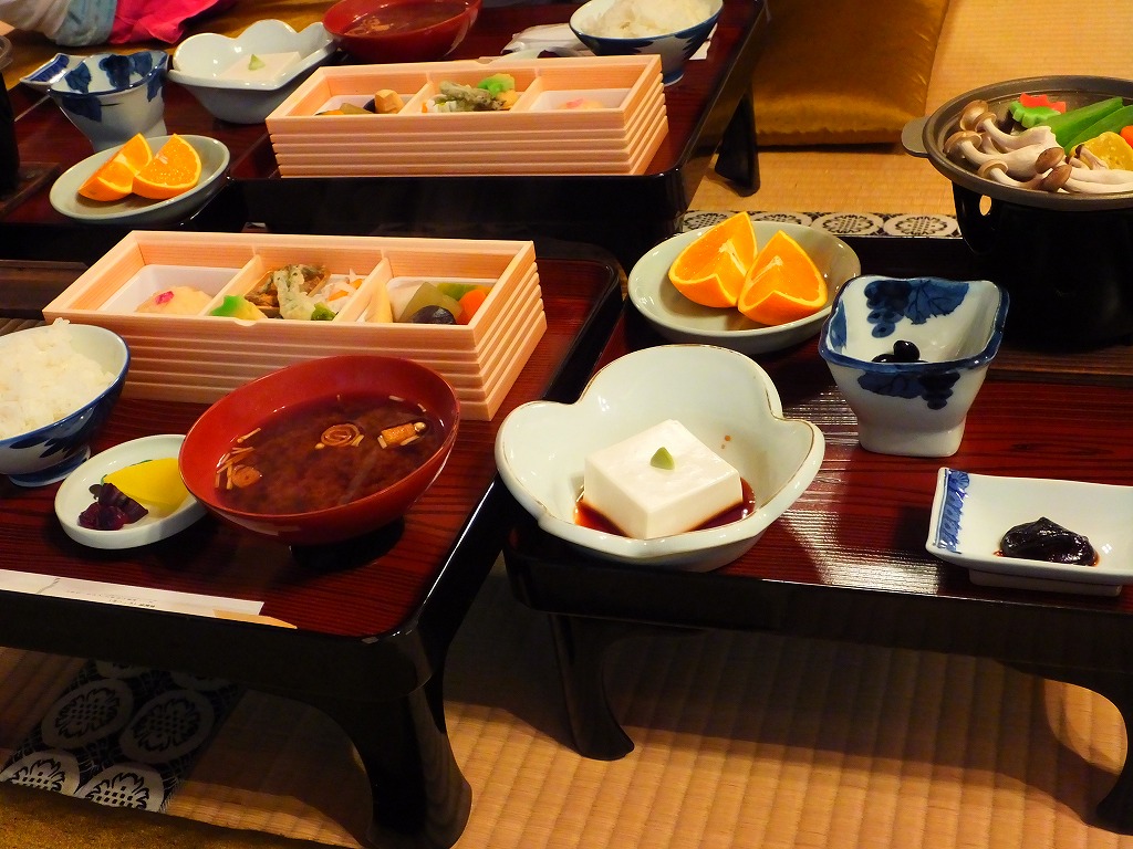 食事をしている最中にご住職自らが食堂に入り、ひとつひとつのテーブルを回られます。会話の途中で笑い声が聞こえてくる場面も多く、決して堅苦しい食事風景ではありません。